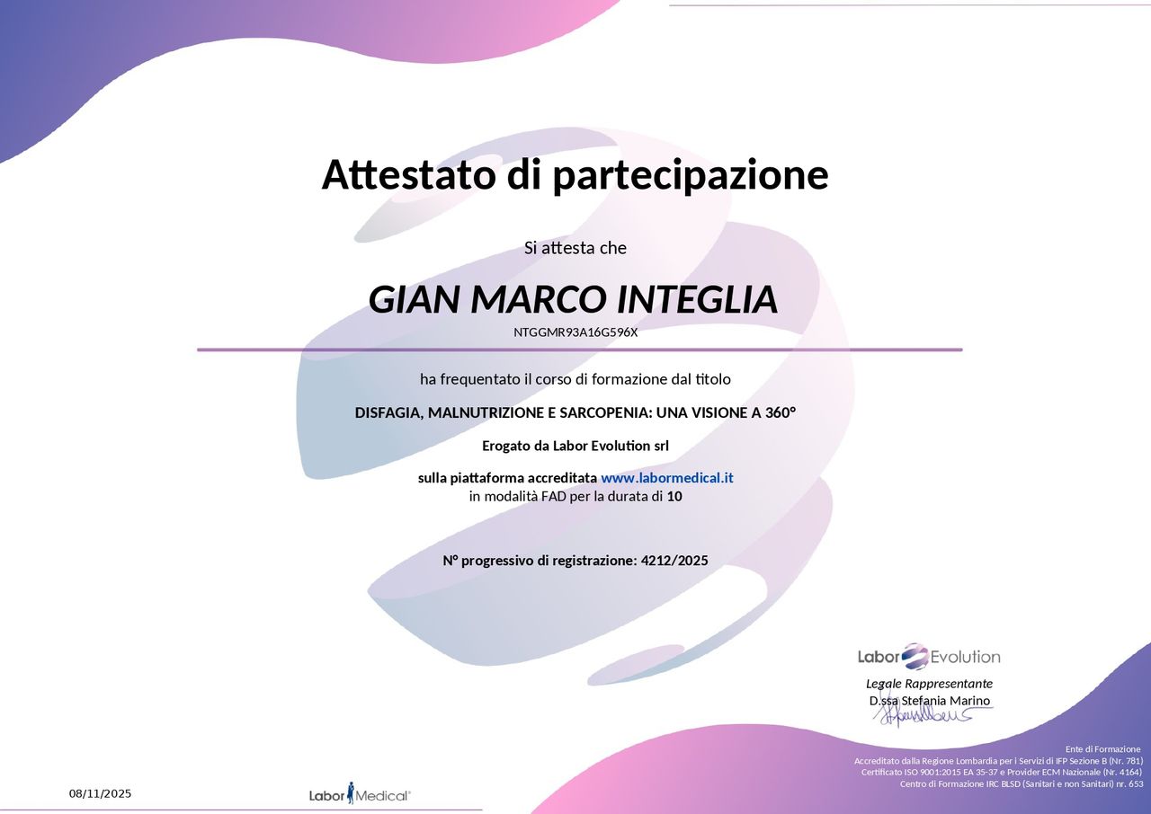 Mi chiamo Gian Marco Integlia e sono un logopedista con una grande passione per la neurologia e l'otorinolaringoiatria. La mia esperienza professionale, maturata in ambito ospedaliero e nei centri di riabilitazione del territorio aquilano e casertano, mi ha permesso di sviluppare competenze approfondite nel trattamento di una vasta gamma di disturbi comunicativi, deglutitori e respiratori.